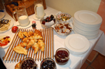 อาหารเช้าของประเทศเยอรมัน ที่อยู่ในโรงแรมเล็ก ๆ อย่างโรงแรม Mercure Accor Hotels Frankfurt เป็นไปอย่างง่าย ๆ ทางโรงแรมทำให้ทานเฉพาะจำนวนที่แจ้งไว้เท่านั้น ถ้าไม่พอก็จะทำให้ใหม่ ซึ่งไม่ยุ่งยากอะไรมากนัก เพียงแต่หยิบอาหารออกจากตู้เย็น เอามาหั่น ๆ ก็ทานได้แล้ว เท่าที่เห็นก็จะมี เครื่องดื่มชา กาแฟ ขนมปัง ชนิดที่แข็งขนาดตีหัวคนแตก ไปจนถึงครัวซอง แฮม นอกนั้นก็จะมีแยม นานาชนิด รวมทั้งโยเกิร์ต ด้วย แต่ที่พวกเราทานได้ก็เห็นจะเป็นไข่ไก่ลวก สาวเสริฟ มาทีไร พอวางหมดทุกที จนผมไม่ได้กินไข่ลวกเยอรมันเพราะ ไข่...หมด ก็เลยไม่รู้ว่า รสชาติเป็นเช่นไร แต่คงเหมือนไข่ลวกทั่ว ๆ นั่นแหล่ะ แต่พวกเราก็กินได้กินดี ไม่รู้จักเบื่อซักที