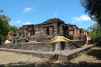 เจดีย์วัดเขาน้อย: ตั้งอยู่บนยอดเขาน้อย เป็นเจดีย์ ไม่เจือปูน การเรียงอิฐเป็นแบบไม่มีระบบ อันเป็นแบบช่างสมัยศรีวิชัย ราวพุทธศตวรรษที่ 13 -18 ฐานเจดีย์เป็นรูปเหลี่ยมจัตุรัสย่อมุมกว้าง-ยาว ประมาณ 20 เมตร องค์เจดีย์ปรักหักพัง เหลือเพียงฐานซึ่งมีซุ้มประตูคูหาแบบรูปโค้งแหลม ภายในมีพระพุทธรูปปูนปั้นปางมารวิชัย ฝีมือช่างท้องถิ่นสมัยอยุธยาอยู่ที่มุมทั้ง 4 ของฐาน จากการขุดแต่งบูรณะของสำนักงานศิลปากรที่ 13 สงขลา เมื่อปี พ.ศ. 2529 ปรากฏว่าได้พบหลักฐานต่าง ๆ จำนวนมาก เช่น หินแกะสลักเป็นลวดลาย และใบหน้าของบุคคล เป็นต้น ภาพแกะสลักเหล่านี้มีรูปแบบศิลปะ ที่ได้รับอิทธิพลมาจากศิลปะแบบคุปตะ (พุทธศตวรรษที่ 9-11) ของอินเดียแสดงว่าสถูปเจดีย์องค์นี้คงจะสร้างขึ้นในสมัยทวารวดีและศรีวิชัย ในระหว่างพุทธศตวรรษที่ 13-14 แล้วชิ้นส่วนของภาพแกะสลักเหล่านี้ได้ถูกนำมาใช้ประกอบเป็นภาพประดับสถูปเจดีย์อีครั้งหนึ่งในคราวต่อเติมระยะหลังราวพุทธศตวรรษที่ 18-20 ซึ่งเป็นสมัยอยุธยาตอนต้น ครั้งถึงสมัยกรุงรัตนโกสินทร์ ได้มีการก่อสร้างเพิ่มเติมสถูปเจดีย์องค์นี้อีกตามหลักฐานที่ปรากฏชวนให้เข้าใจได้ว่า เจดีย์วัดเขาน้อยองค์นี้ได้รับการบูรณะต่อเติมซับซ้อนกันมาหลายยุคหลายสมัยเป็นเวลานานหลายร้อยปีปัจจุบันยังเหลือไว้เพียงส่วนฐานเป็นพยานให้เห็นถึงความเจริญรุ่งเรืองแต่ในอดีต